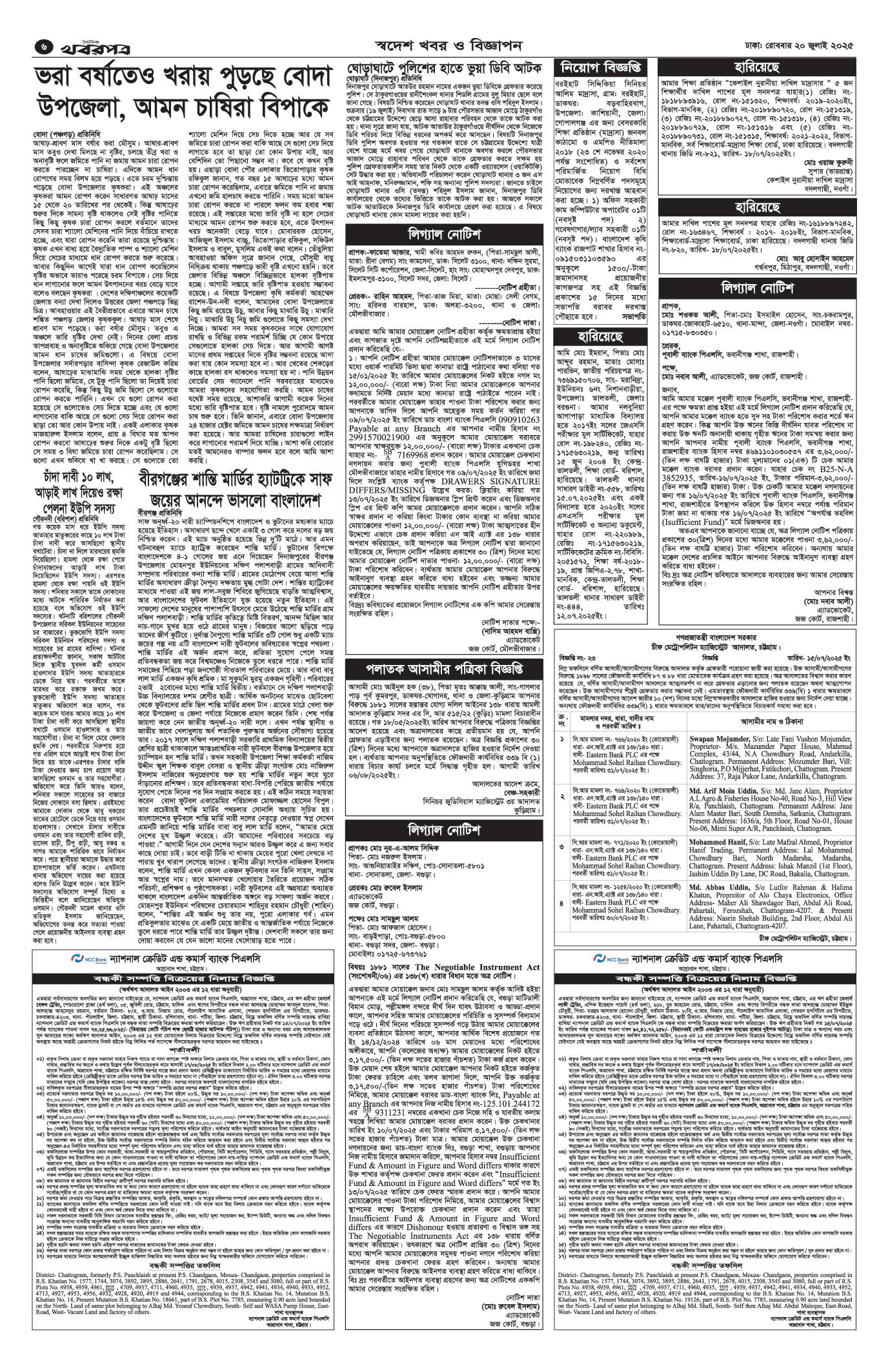 প্রধান সম্পাদক: মাফরুজা সুলতানা, সম্পাদক: ব্যারিষ্টার মোহাম্মদ মারুফ ইব্রাহীম (আকাশ)। মোঃ হাফিজ ইব্রাহিম কর্তৃক দি টাইমস প্রিন্টিং প্রেস লিমিটেড ৭/এ/১ তেজগাঁও শিল্প এলাকা, ঢাকা থেকে মুদ্রিত এবং প্রকাশিত। সম্পাদকীয় ও বাণিজ্যিক কার্যালয় : ৭/এ/১ তেজগাঁও শিল্প এলাকা, ঢাকা-১২০৮। ফোন : ৫৮১৫৪০৫১। Email : khabarpatrabd@gmail.com