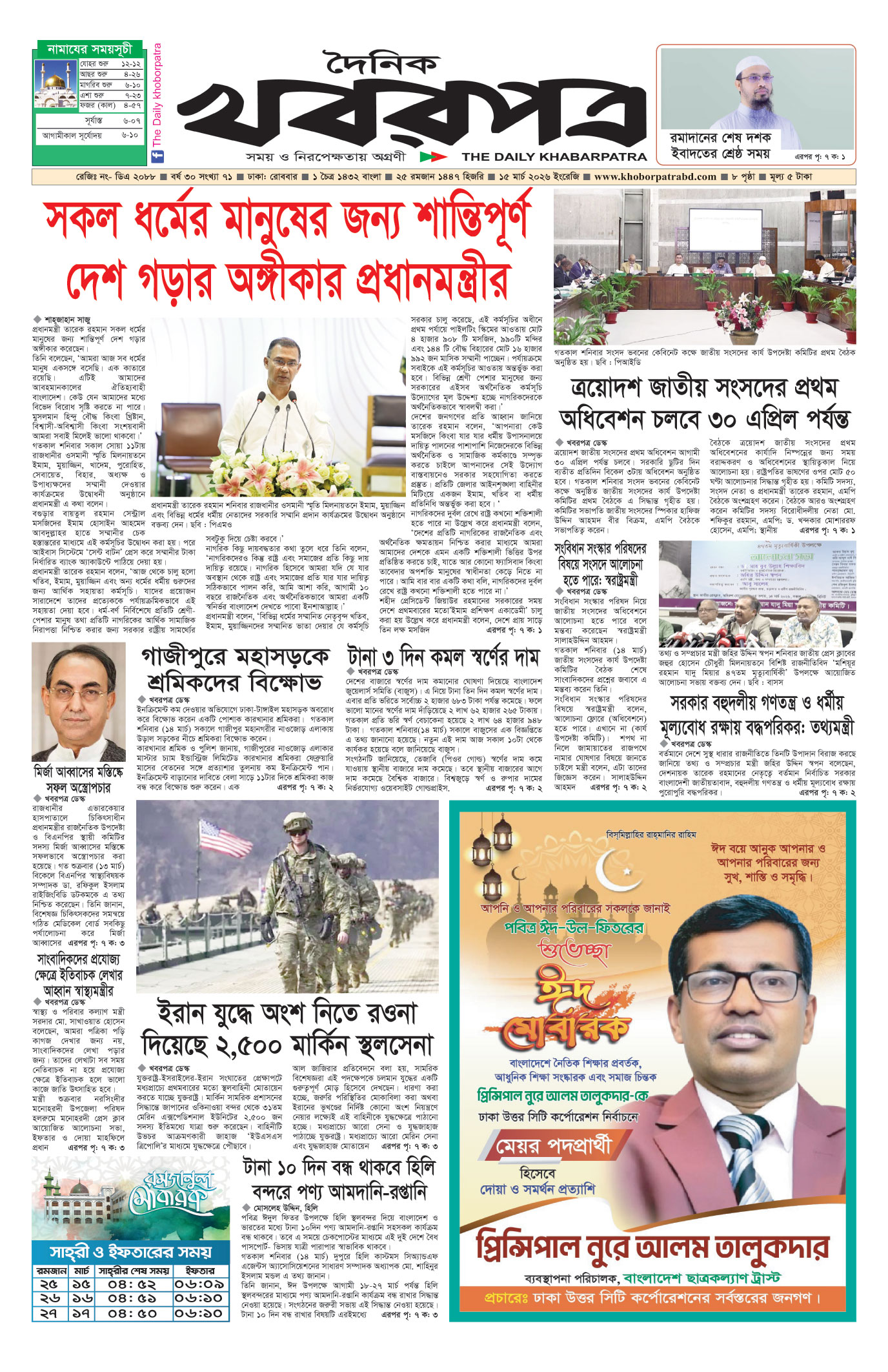 প্রধান সম্পাদক: মাফরুজা সুলতানা, সম্পাদক: ব্যারিষ্টার মোহাম্মদ মারুফ ইব্রাহীম (আকাশ)। মোঃ হাফিজ ইব্রাহিম কর্তৃক দি টাইমস প্রিন্টিং প্রেস লিমিটেড ৭/এ/১ তেজগাঁও শিল্প এলাকা, ঢাকা থেকে মুদ্রিত এবং প্রকাশিত। সম্পাদকীয় ও বাণিজ্যিক কার্যালয় : ৭/এ/১ তেজগাঁও শিল্প এলাকা, ঢাকা-১২০৮। ফোন : ৫৮১৫৪০৫১। Email : khabarpatrabd@gmail.com