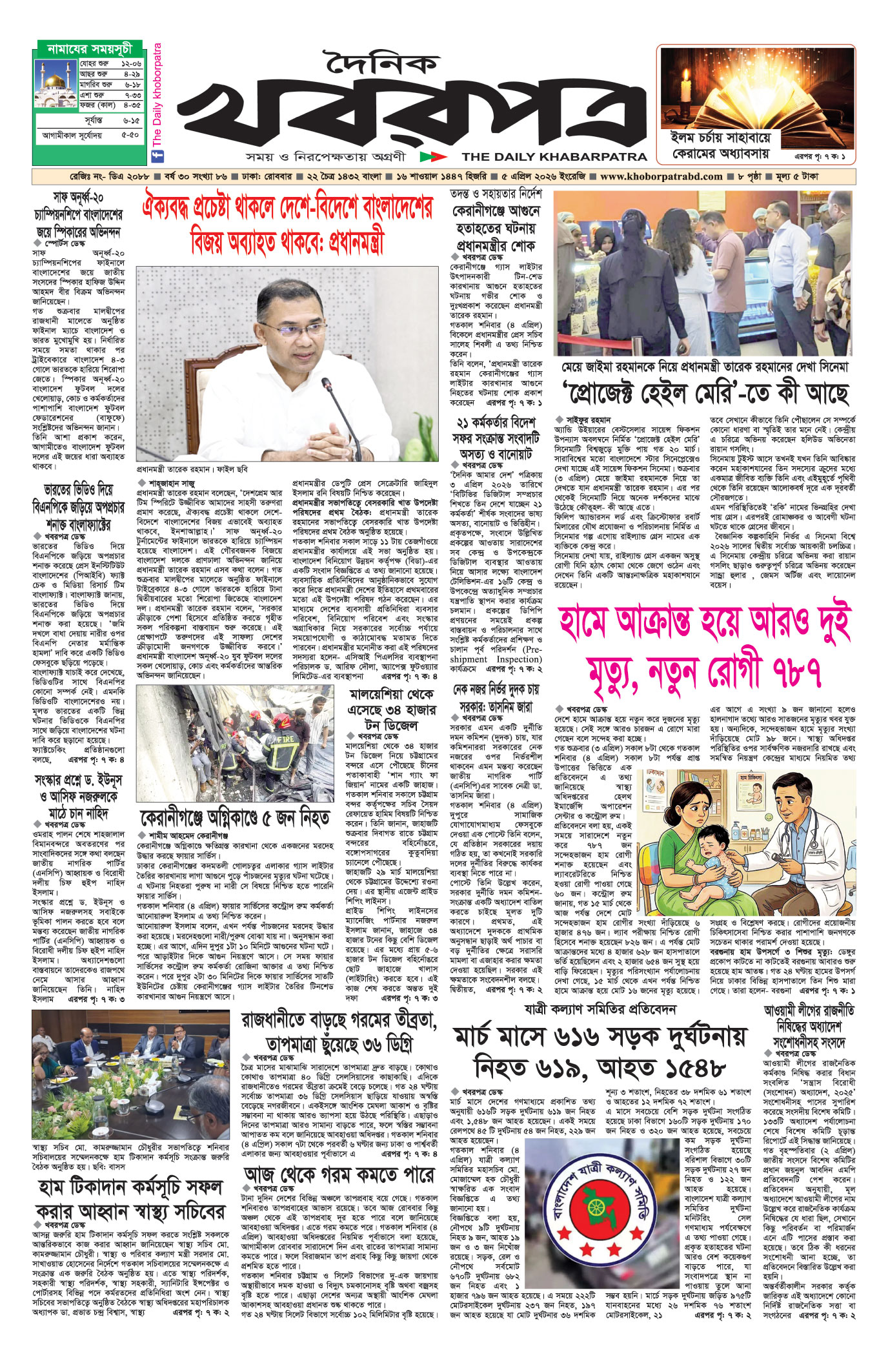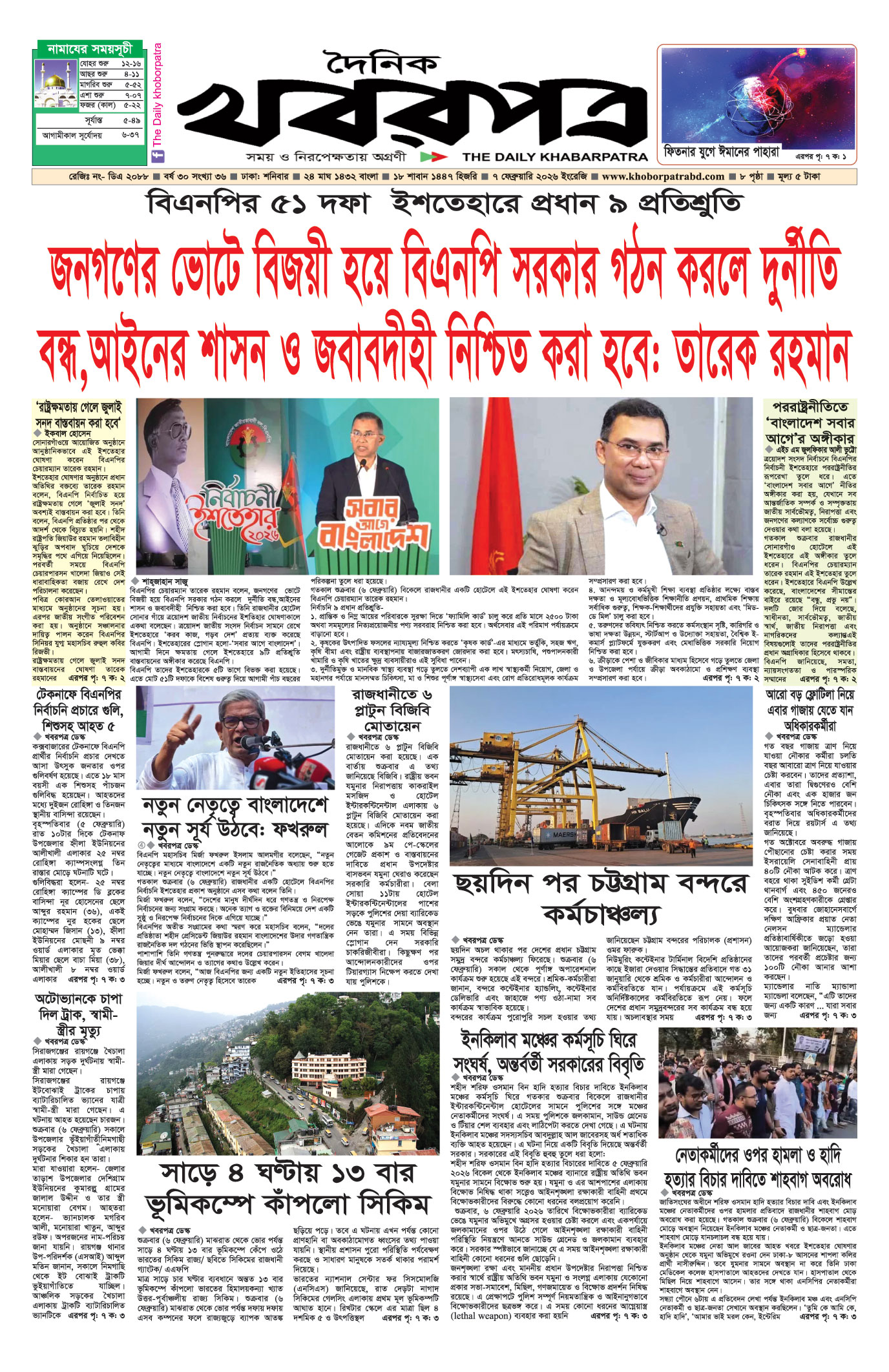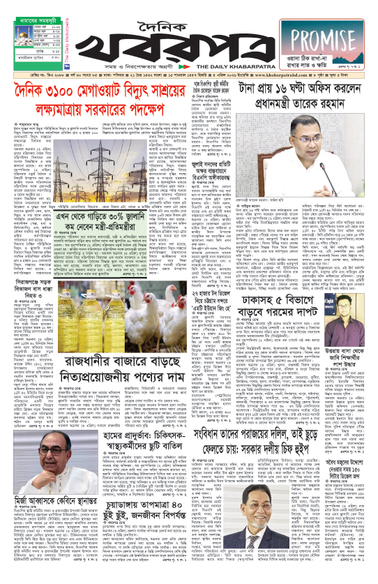 প্রধান সম্পাদক: মাফরুজা সুলতানা, সম্পাদক: ব্যারিষ্টার মোহাম্মদ মারুফ ইব্রাহীম (আকাশ)। মোঃ হাফিজ ইব্রাহিম কর্তৃক দি টাইমস প্রিন্টিং প্রেস লিমিটেড ৭/এ/১ তেজগাঁও শিল্প এলাকা, ঢাকা থেকে মুদ্রিত এবং প্রকাশিত। সম্পাদকীয় ও বাণিজ্যিক কার্যালয় : ৭/এ/১ তেজগাঁও শিল্প এলাকা, ঢাকা-১২০৮। ফোন : ৫৮১৫৪০৫১। Email : khabarpatrabd@gmail.com