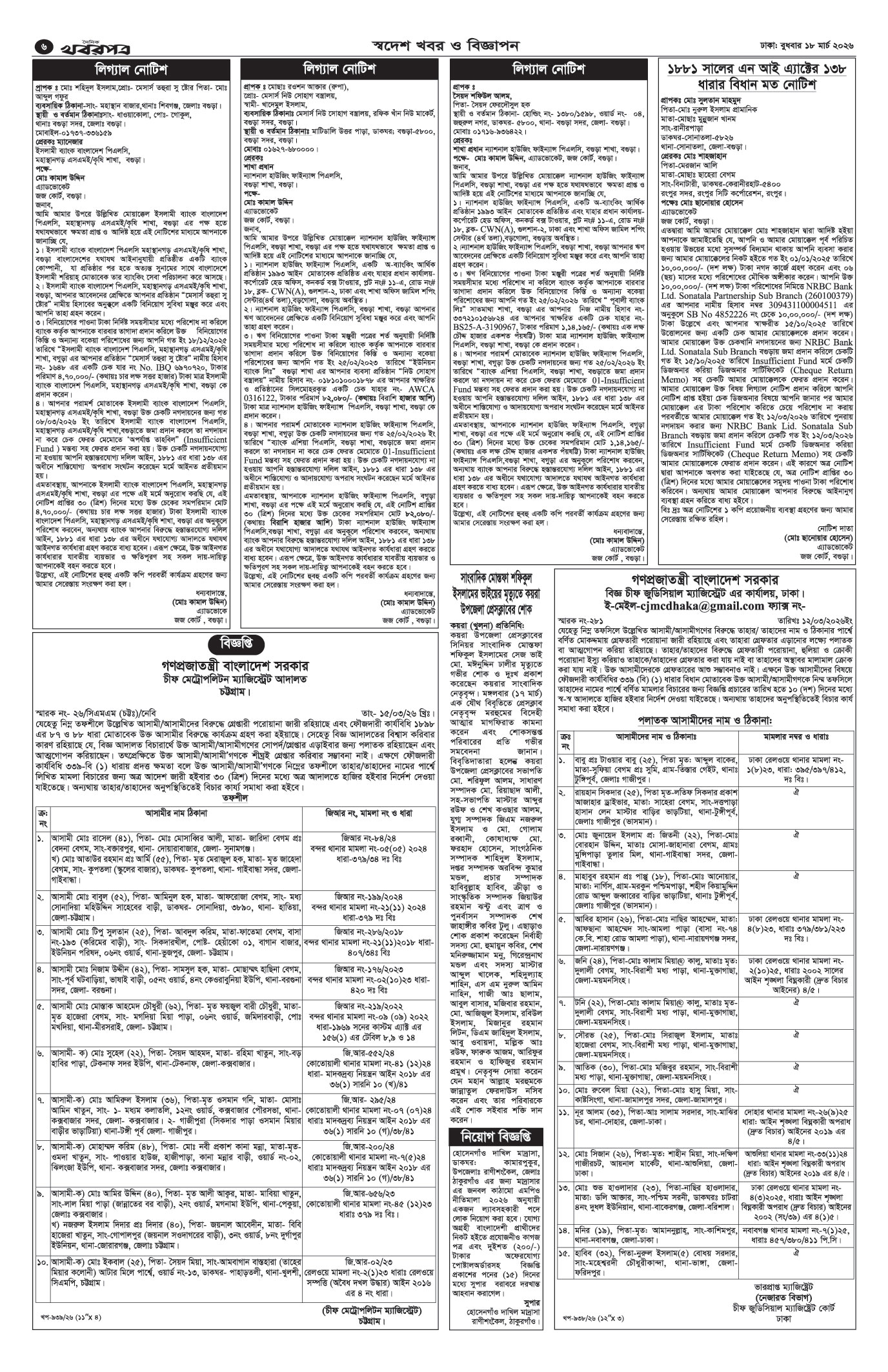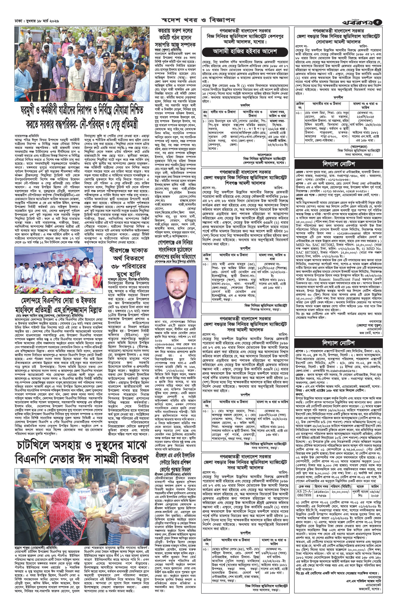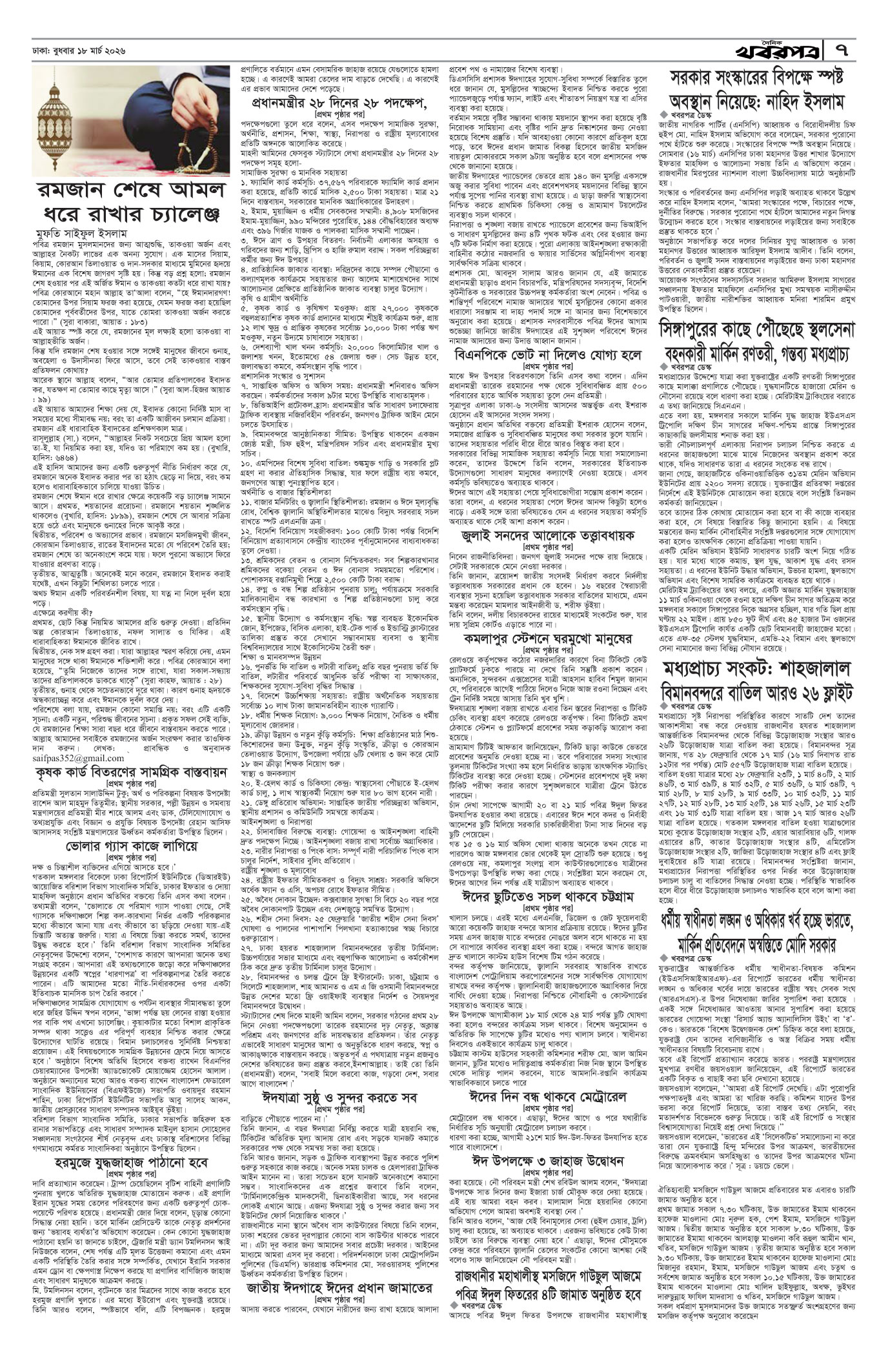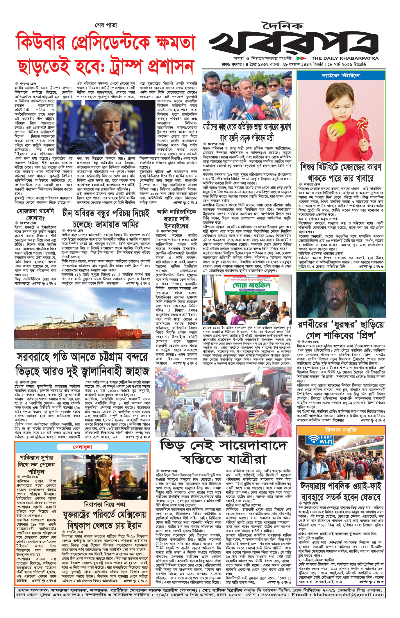 প্রধান সম্পাদক: মাফরুজা সুলতানা, সম্পাদক: ব্যারিষ্টার মোহাম্মদ মারুফ ইব্রাহীম (আকাশ)। মোঃ হাফিজ ইব্রাহিম কর্তৃক দি টাইমস প্রিন্টিং প্রেস লিমিটেড ৭/এ/১ তেজগাঁও শিল্প এলাকা, ঢাকা থেকে মুদ্রিত এবং প্রকাশিত। সম্পাদকীয় ও বাণিজ্যিক কার্যালয় : ৭/এ/১ তেজগাঁও শিল্প এলাকা, ঢাকা-১২০৮। ফোন : ৫৮১৫৪০৫১। Email : khabarpatrabd@gmail.com