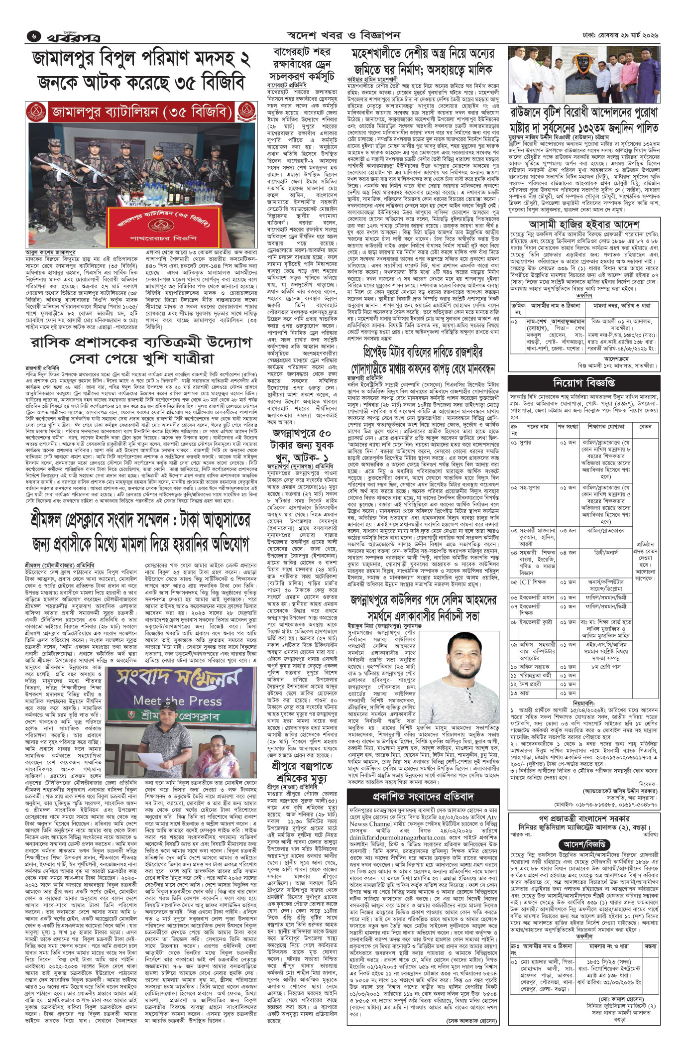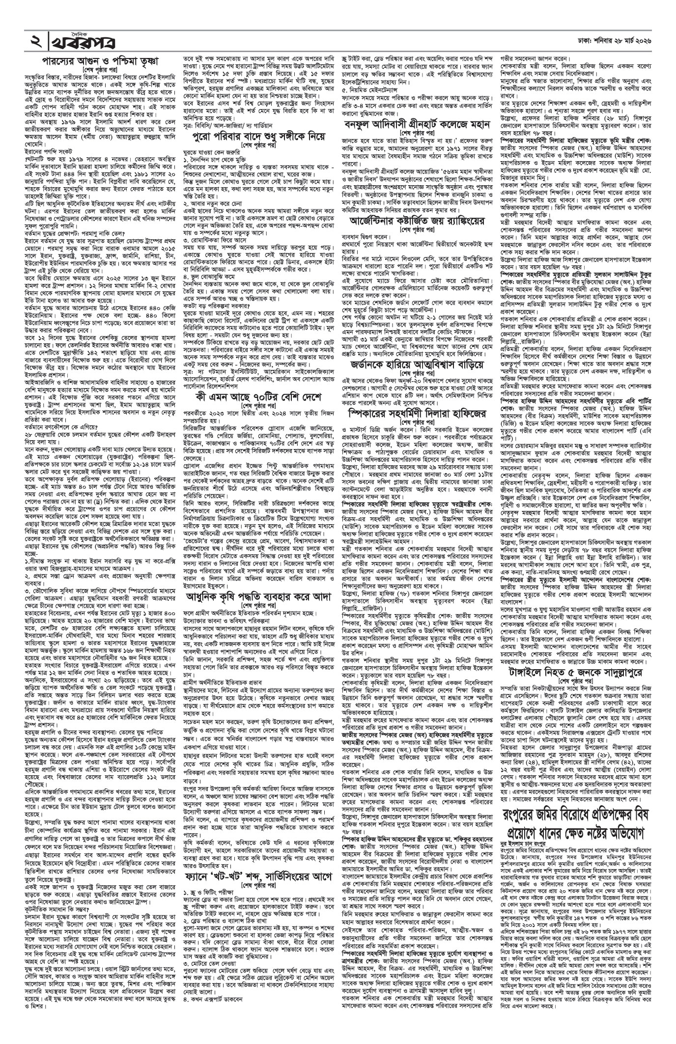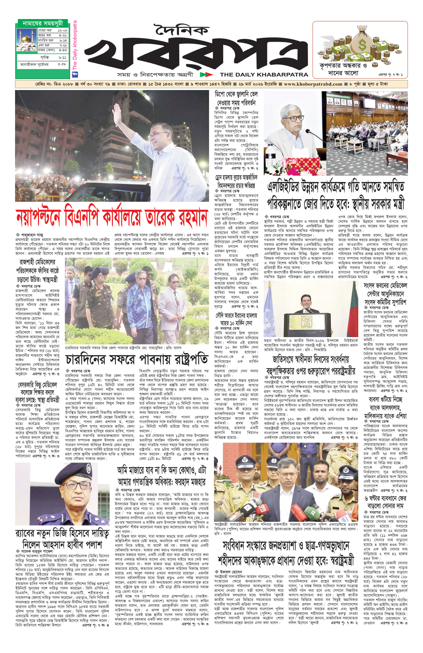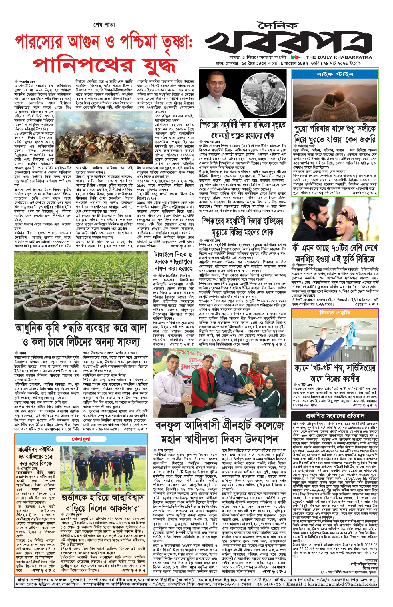 প্রধান সম্পাদক: মাফরুজা সুলতানা, সম্পাদক: ব্যারিষ্টার মোহাম্মদ মারুফ ইব্রাহীম (আকাশ)। মোঃ হাফিজ ইব্রাহিম কর্তৃক দি টাইমস প্রিন্টিং প্রেস লিমিটেড ৭/এ/১ তেজগাঁও শিল্প এলাকা, ঢাকা থেকে মুদ্রিত এবং প্রকাশিত। সম্পাদকীয় ও বাণিজ্যিক কার্যালয় : ৭/এ/১ তেজগাঁও শিল্প এলাকা, ঢাকা-১২০৮। ফোন : ৫৮১৫৪০৫১। Email : khabarpatrabd@gmail.com